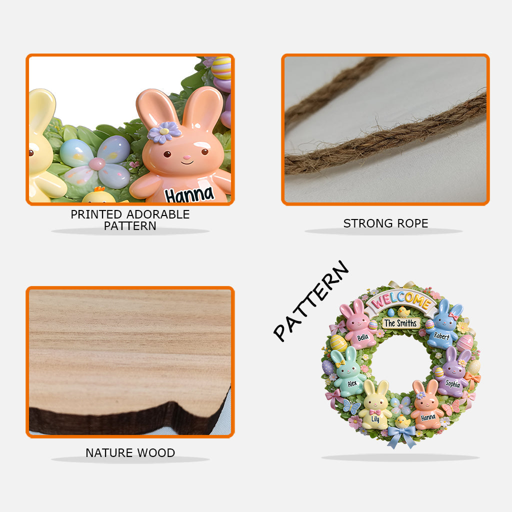 Famille de Pâques - Panneau en bois personnalisé en forme de famille