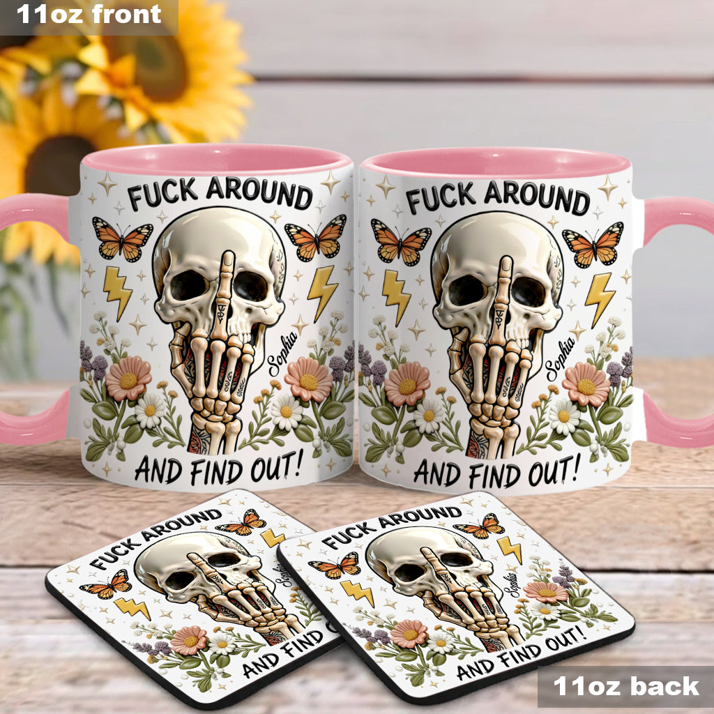 F Around And Find Out - Mug et sous-verre personnalisés avec motif tête de mort