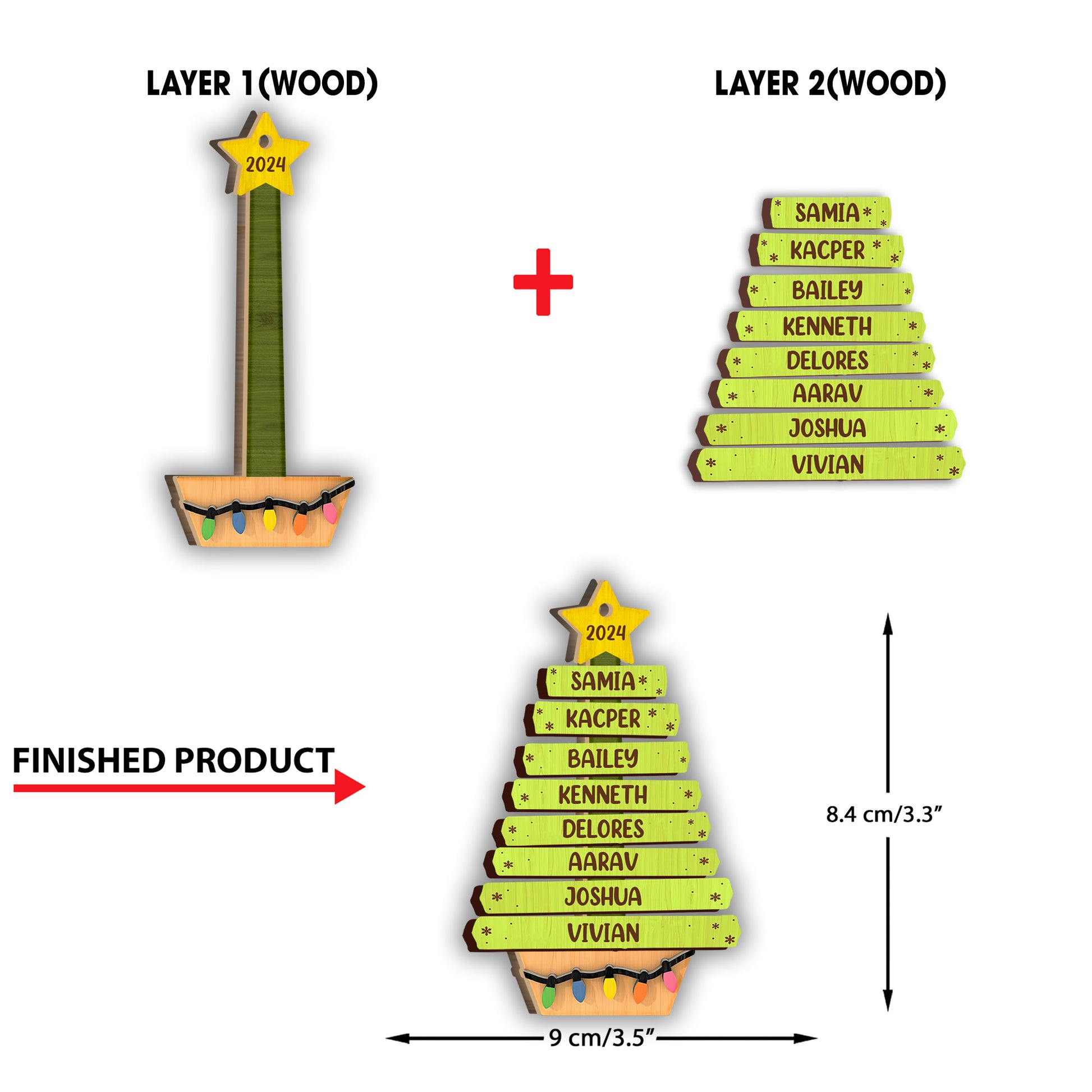 Ornement d'arbre généalogique - Ornement familial personnalisé en 2 parties superposées
