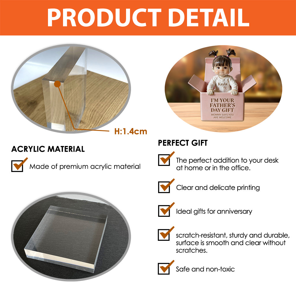 Father's Day Gift - Personalized Newborn Custom Shaped Acrylic Plaque