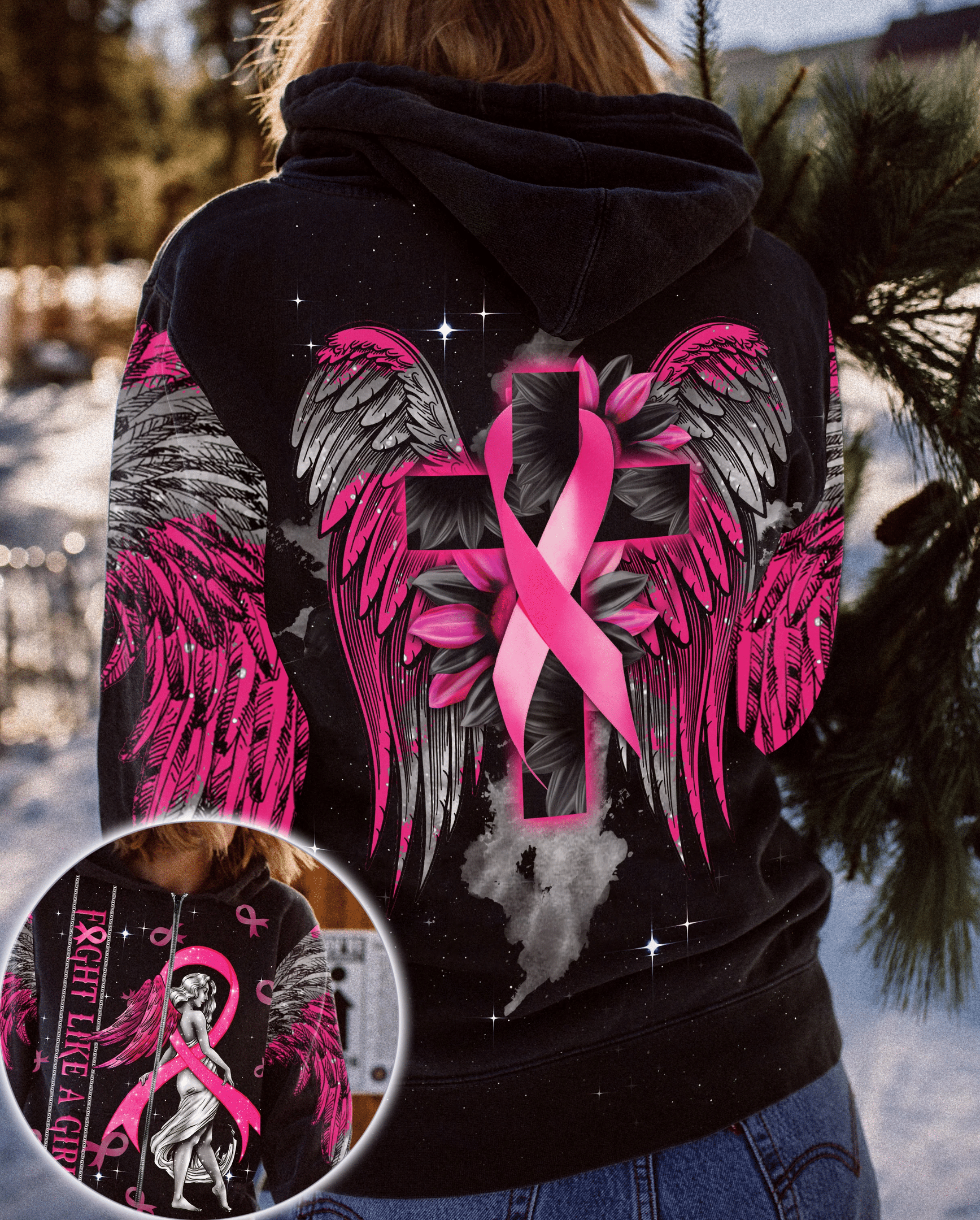 Combattez le cancer du sein comme une fille - T-shirt et sweat à capuche de sensibilisation au cancer du sein 0822