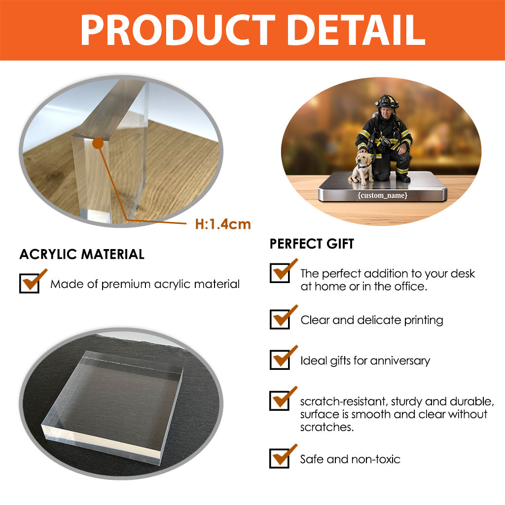 Cadeau pour pompier - Plaque acrylique personnalisée en forme de pompier