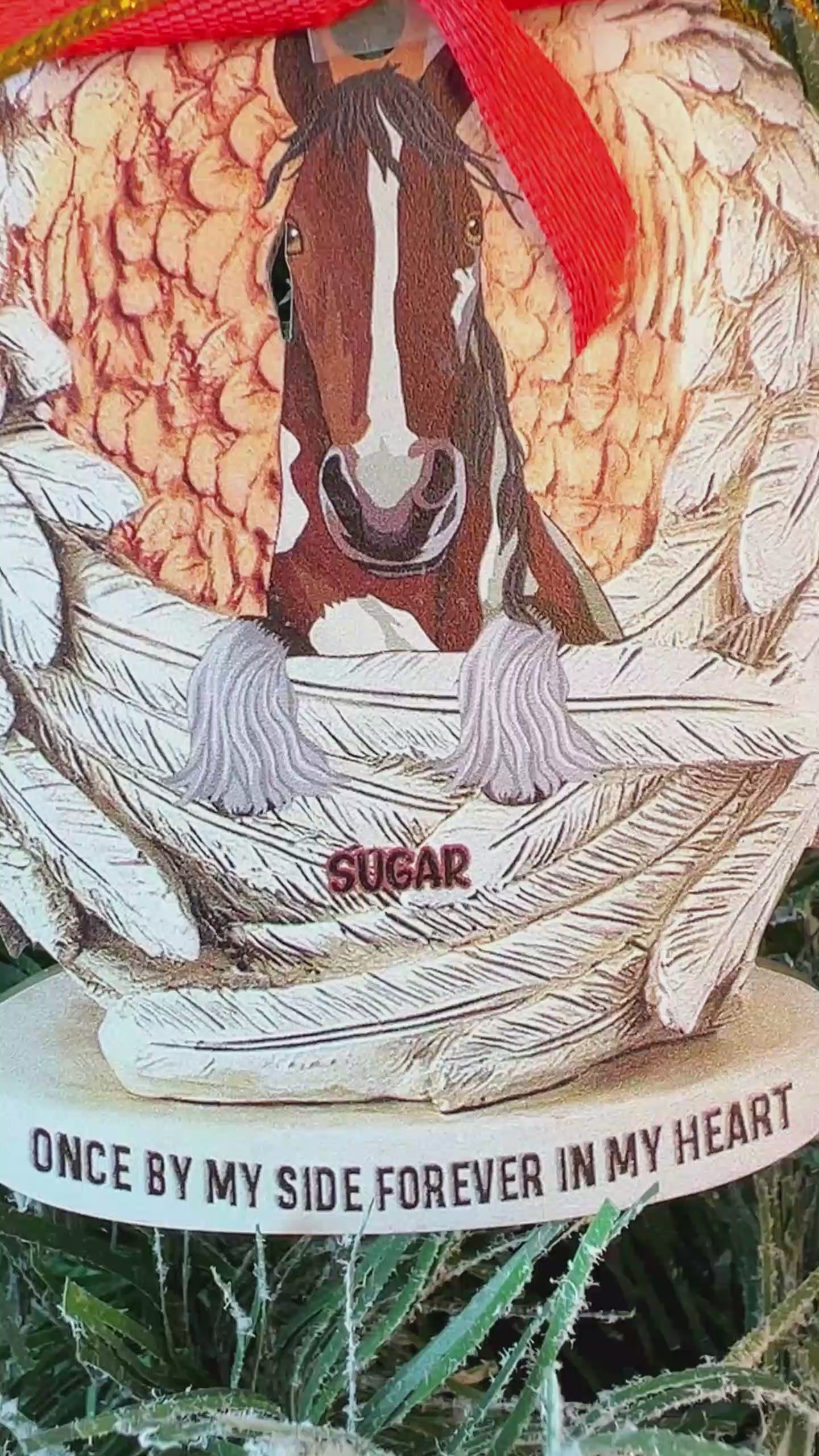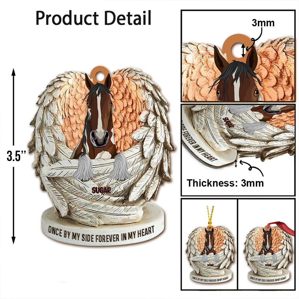À jamais dans nos cœurs - Ornement de Noël personnalisé en forme de cheval (Impression recto verso)