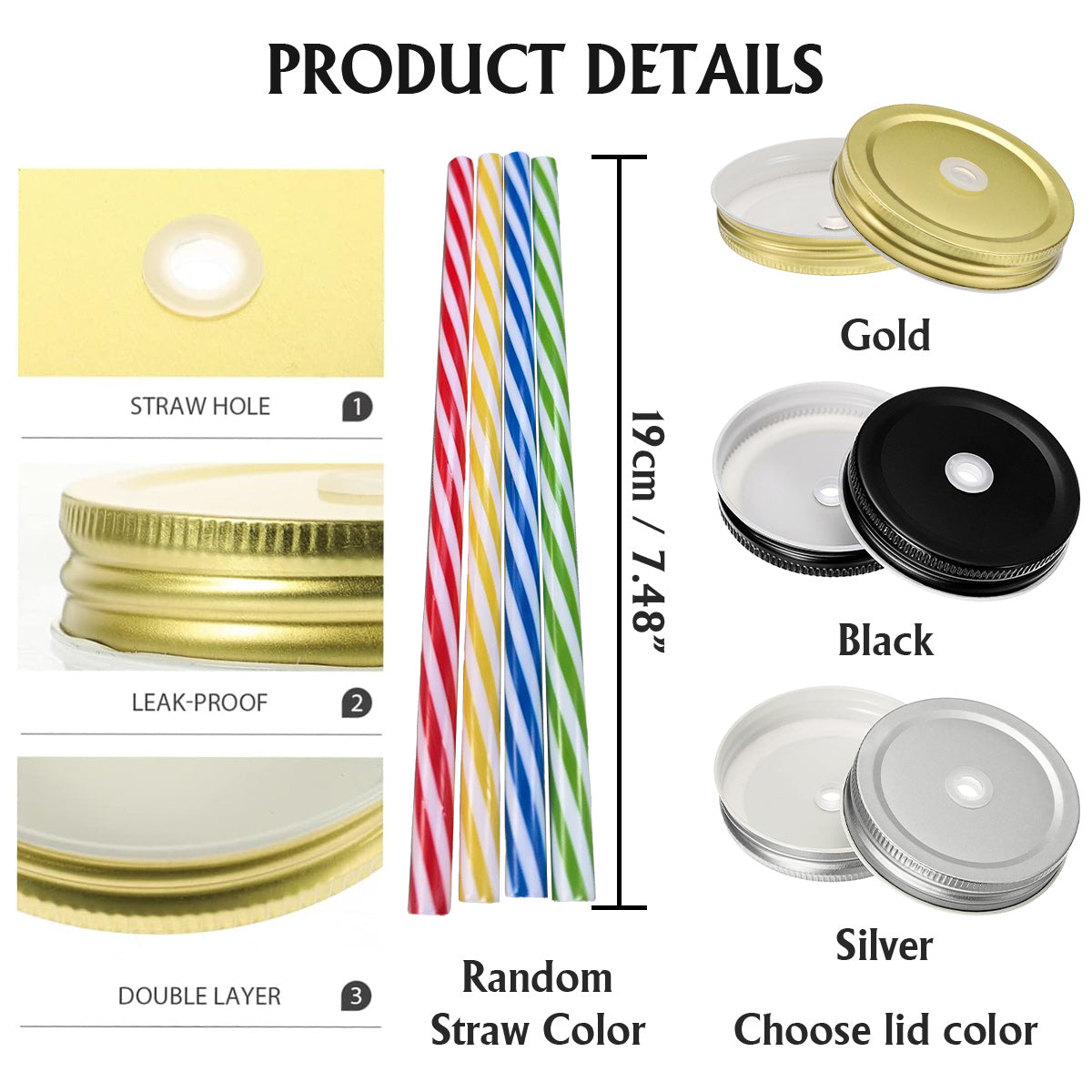 - 1 bocal Mason + 1 couvercle (couleur au choix) + 1 paille (couleur aléatoire)