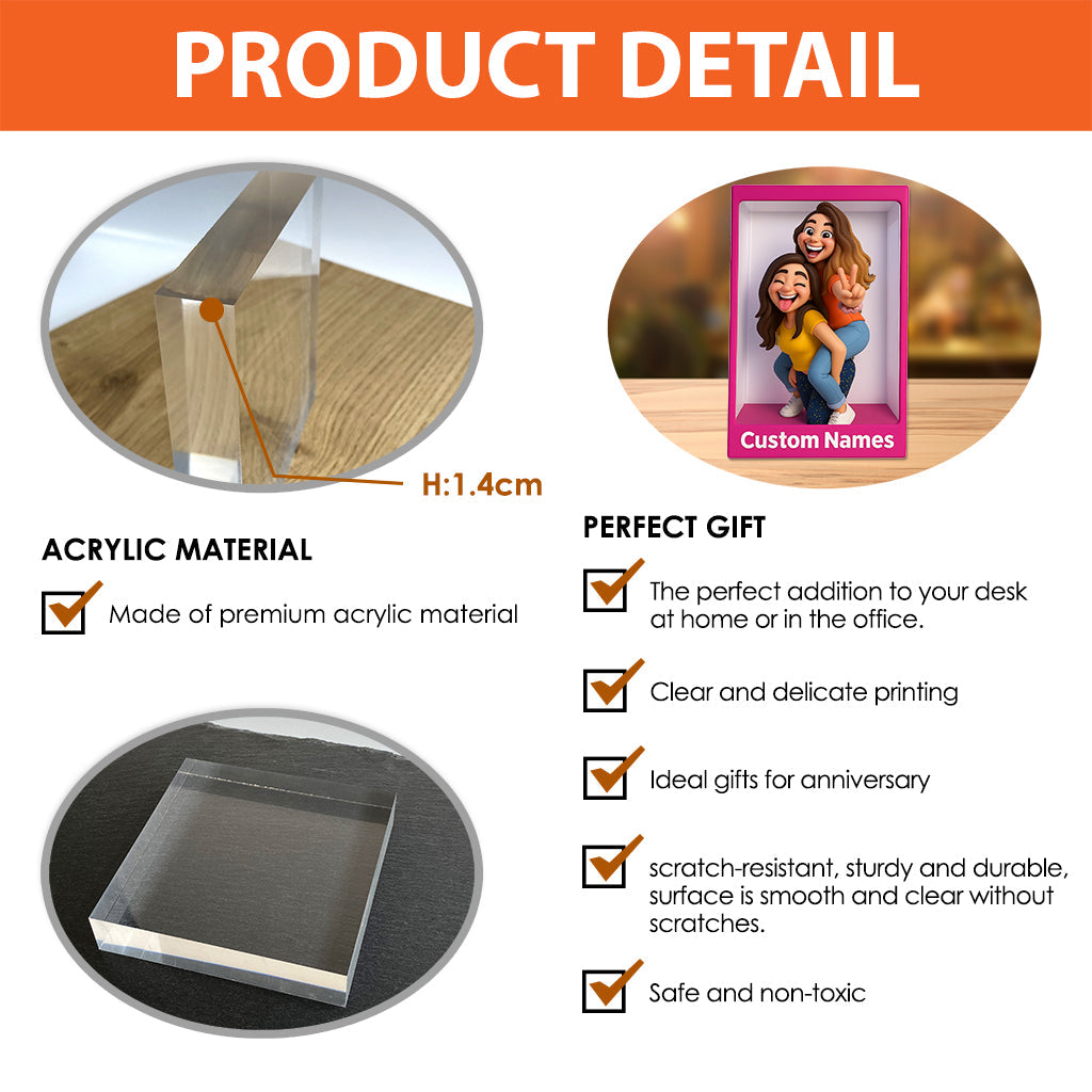 Plaque acrylique personnalisée « Meilleure amie » avec motif mascotte exagéré et humoristique, cadeau original et amusant.