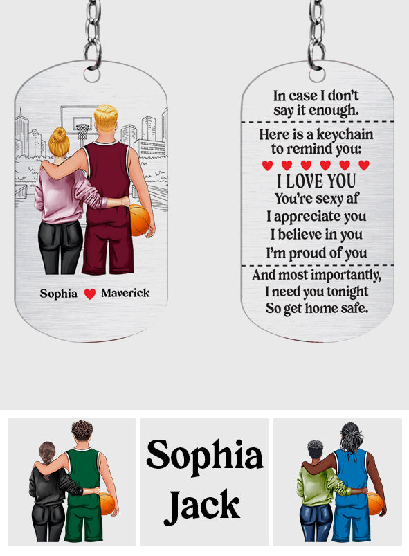 Rentrez chez vous en toute sécurité - Porte-clés personnalisé en acier inoxydable sur le thème du basketball