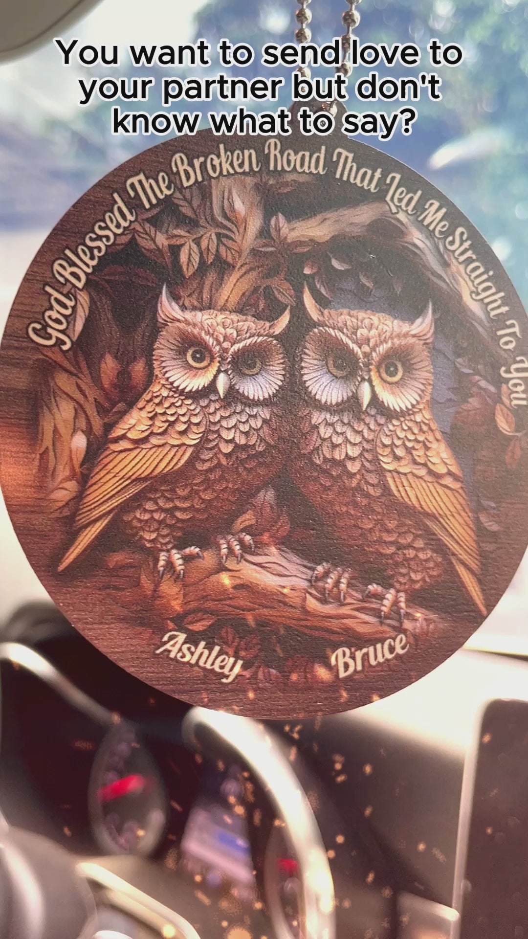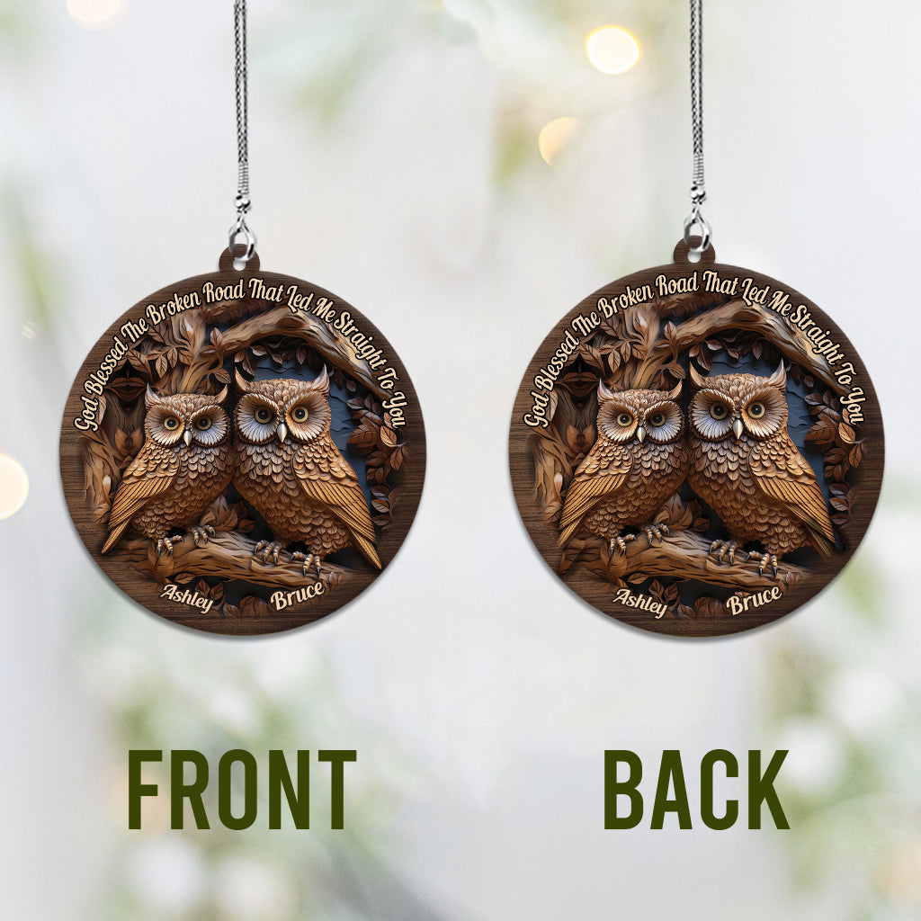 Dieu a béni la route brisée - Ornement de voiture hibou personnalisé « Dieu a béni la route brisée »