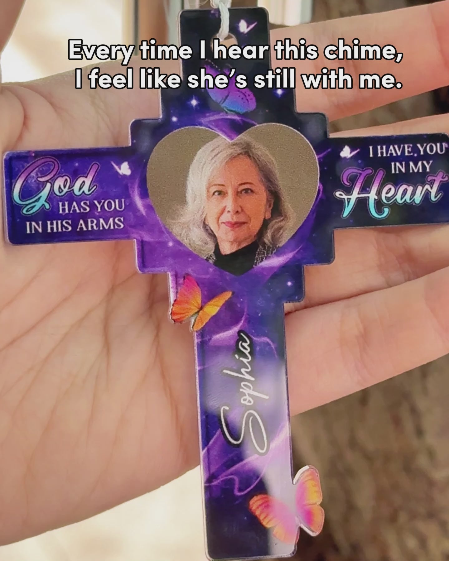 Dieu te tient dans ses bras, je te porte dans mon cœur - Carillon commémoratif personnalisé