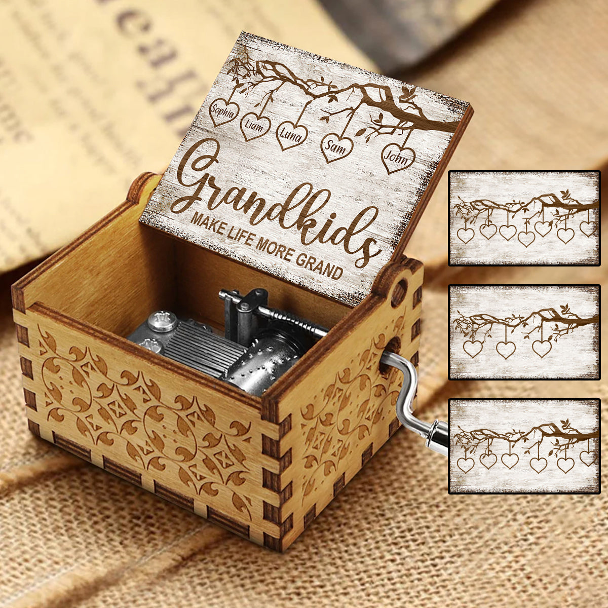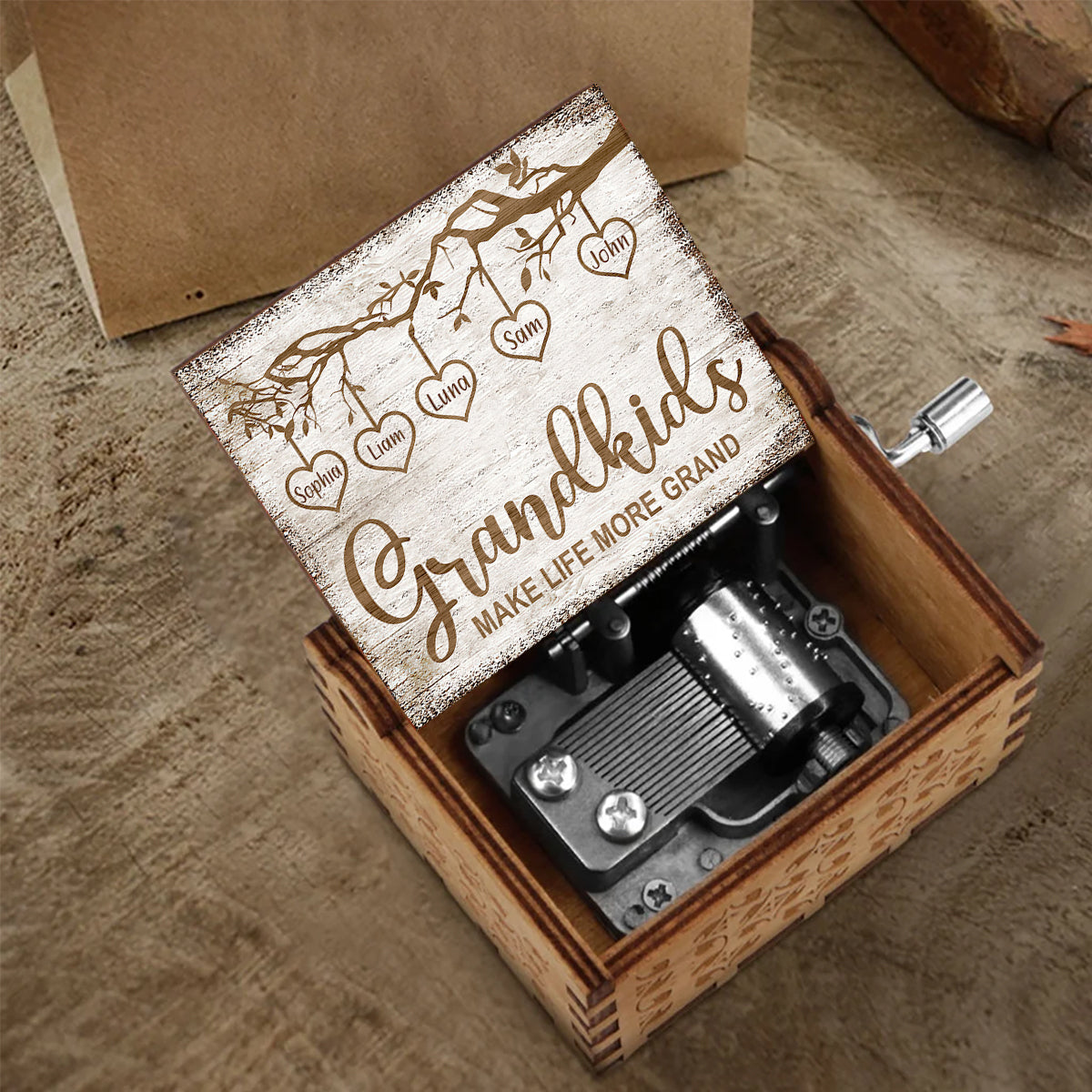 Les petits-enfants rendent la vie plus belle - Boîte à musique à manivelle personnalisée pour grand-mère