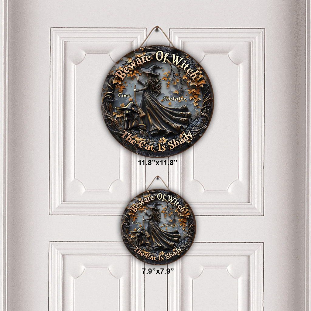 Halloween est mieux avec un chat - Panneau rond en bois personnalisé avec un chat noir