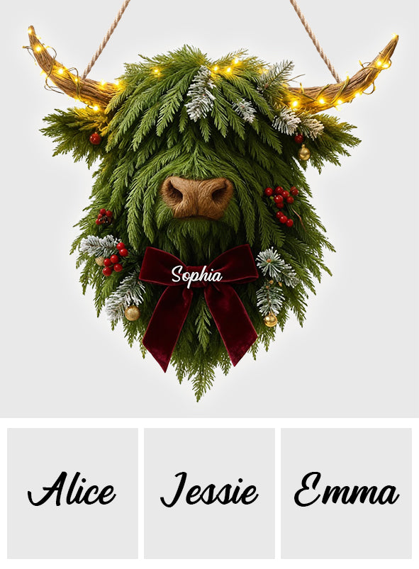 Couronne de vaches des Highlands - Panneau lumineux LED personnalisé en acrylique représentant une vache des Highlands