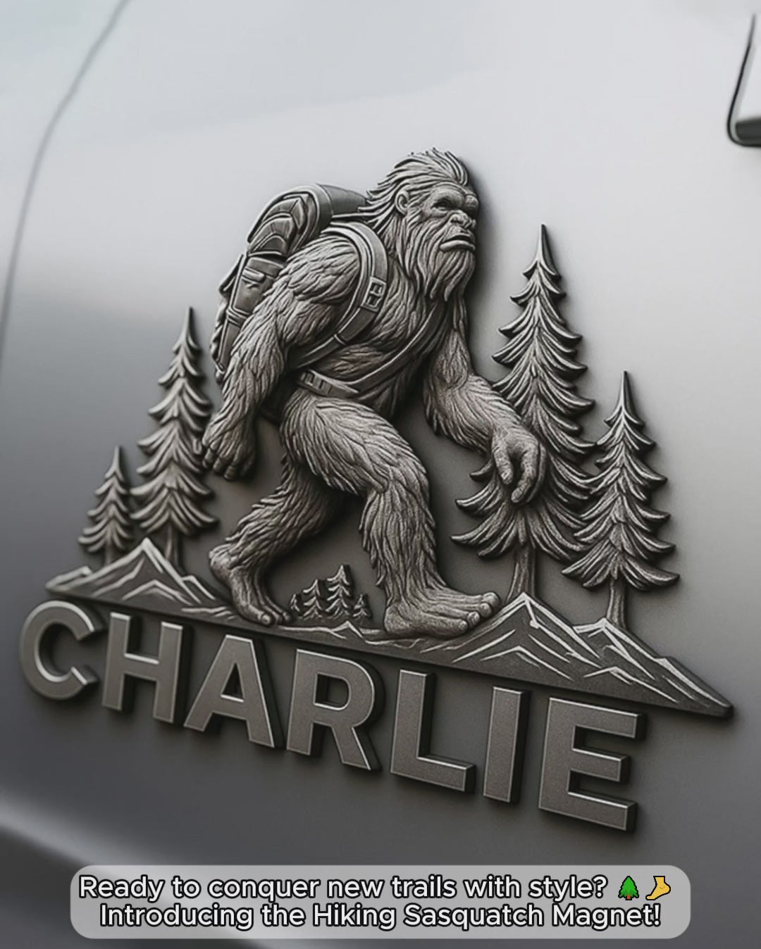 Sasquatch en randonnée - Aimant de randonnée personnalisé