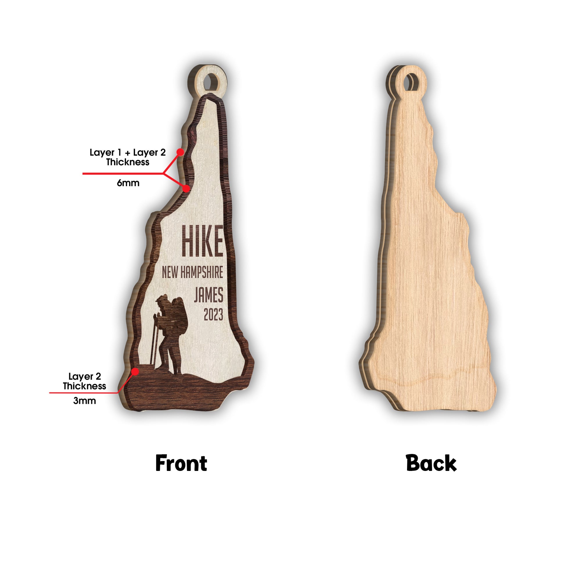Équipe de randonnée - Ornement personnalisé de randonnée en 2 parties superposées