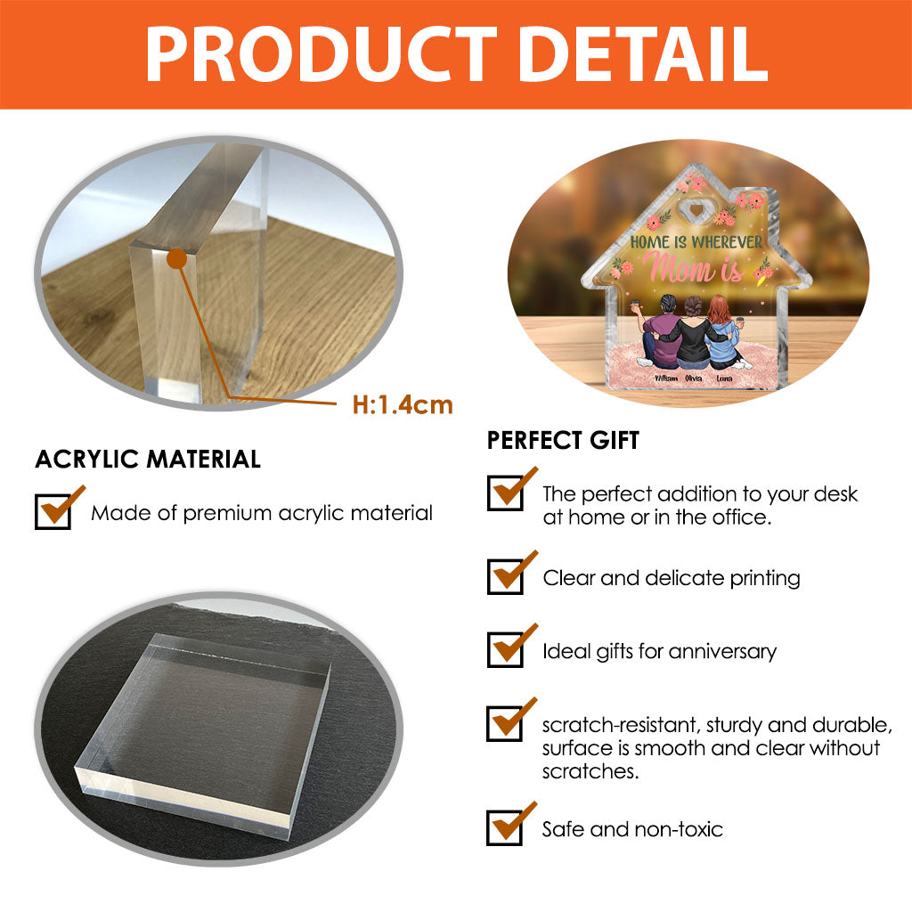 « La maison, c'est là où est maman » - Plaque acrylique personnalisée pour la fête des mères