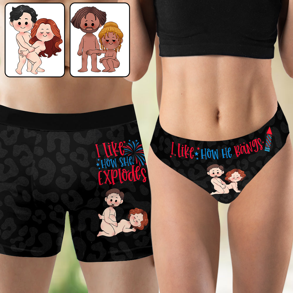 J'aime comment il baise, j'aime comment elle explose - 4 juillet - Culottes personnalisées pour couples (femmes et hommes)