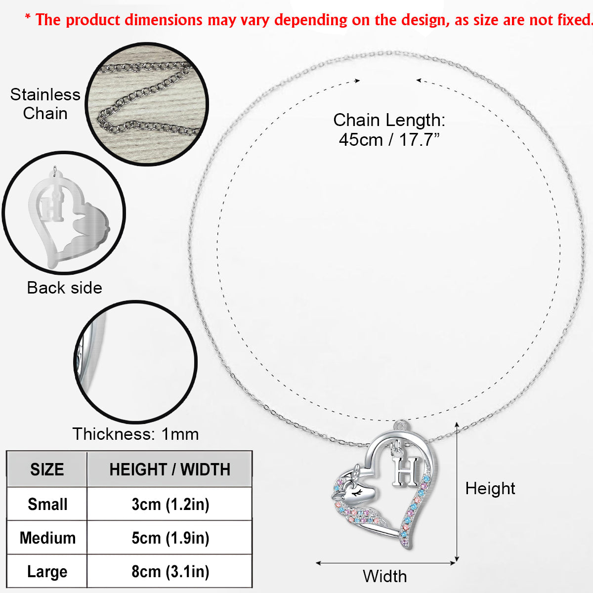 - Color: Gold/ Silver (same color for pendant and chain)
