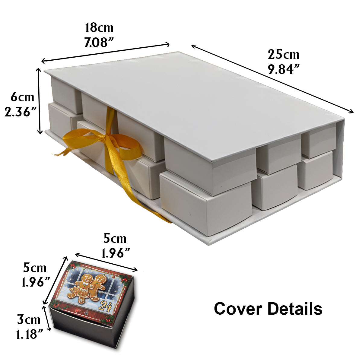 - Dimensions de la boîte – Le calendrier fermé mesure 25×18×6cm (9,84"×7,09"×2,36"), conçu pour ressembler à un livre d'histoires avec une fermeture à ruban pour une touche élégante.