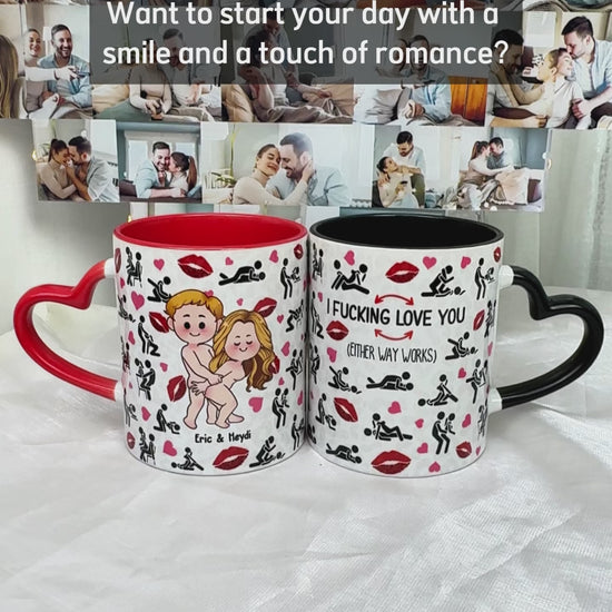 Je t'aime - Mug personnalisé pour couple avec anse en forme de cœur
