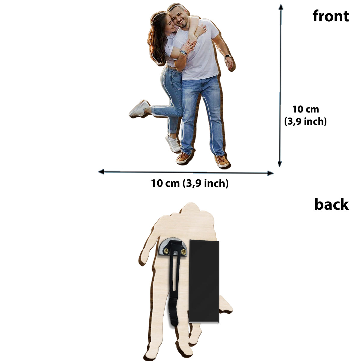 - Réalisée par sublimation, votre photo est imprimée sur un matériau magnétique et une attache métallique pour visière est collée au dos.