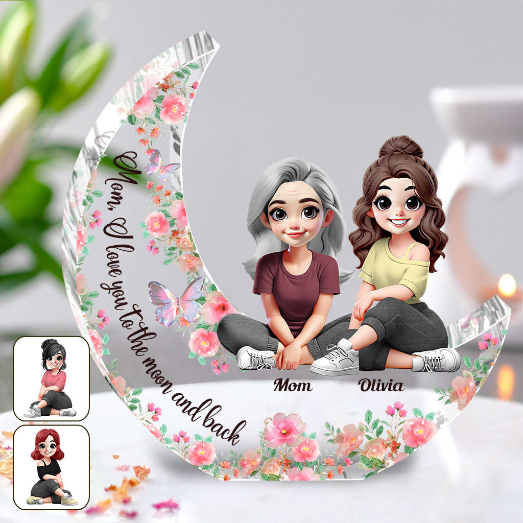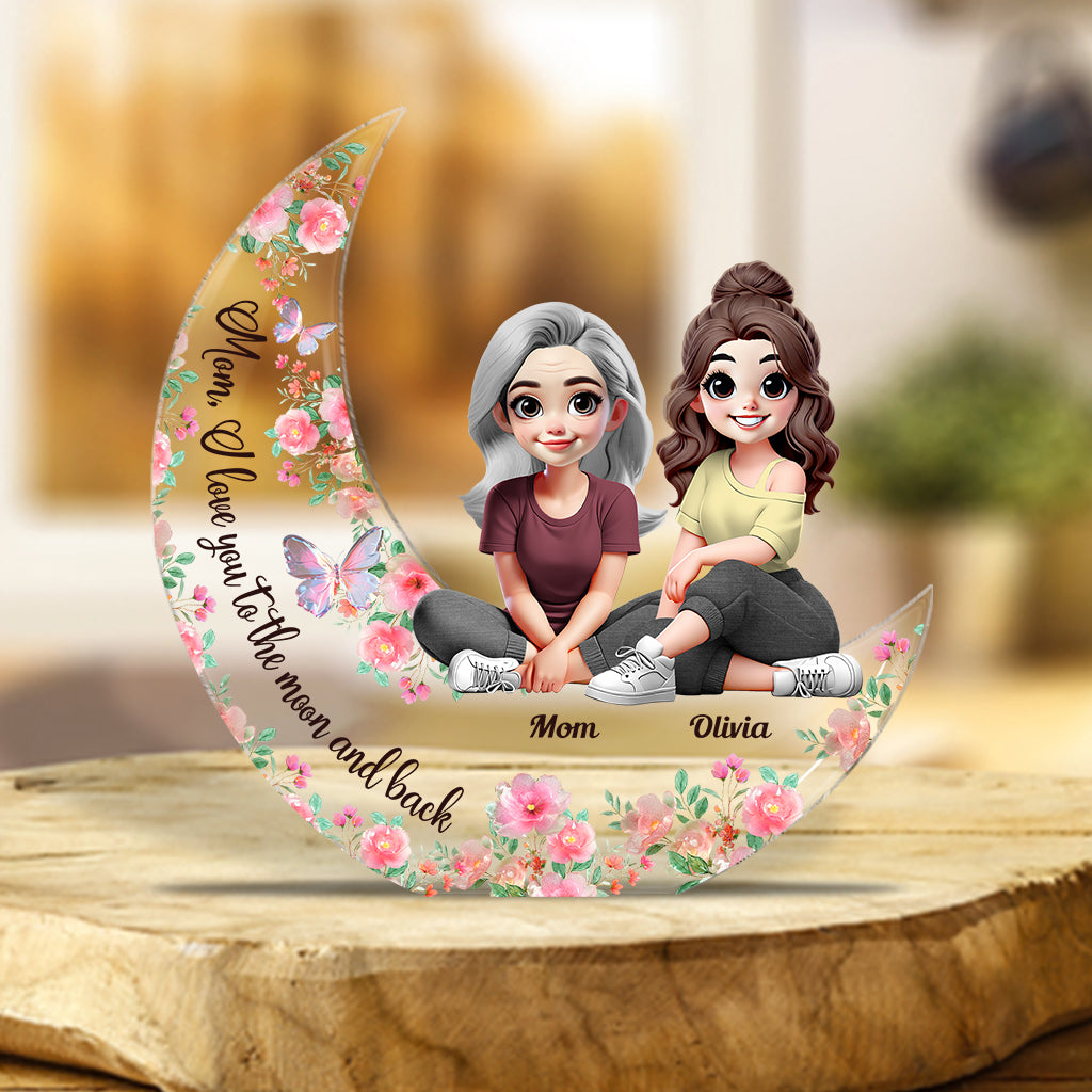 Je t'aime jusqu'à la lune et retour - Plaque acrylique personnalisée pour maman