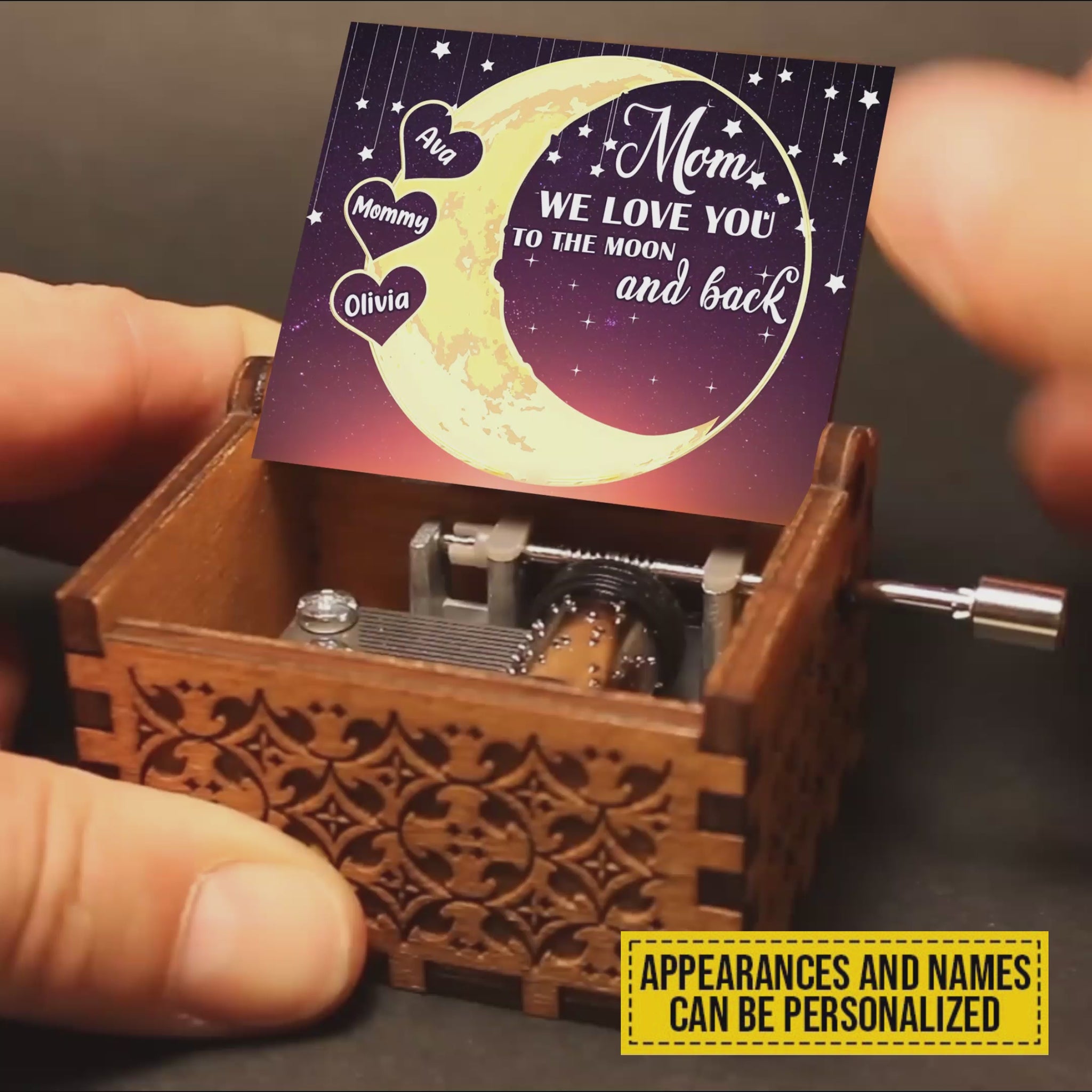 Je t'aime jusqu'à la lune et retour - Boîte à musique à manivelle personnalisée pour la fête des mères