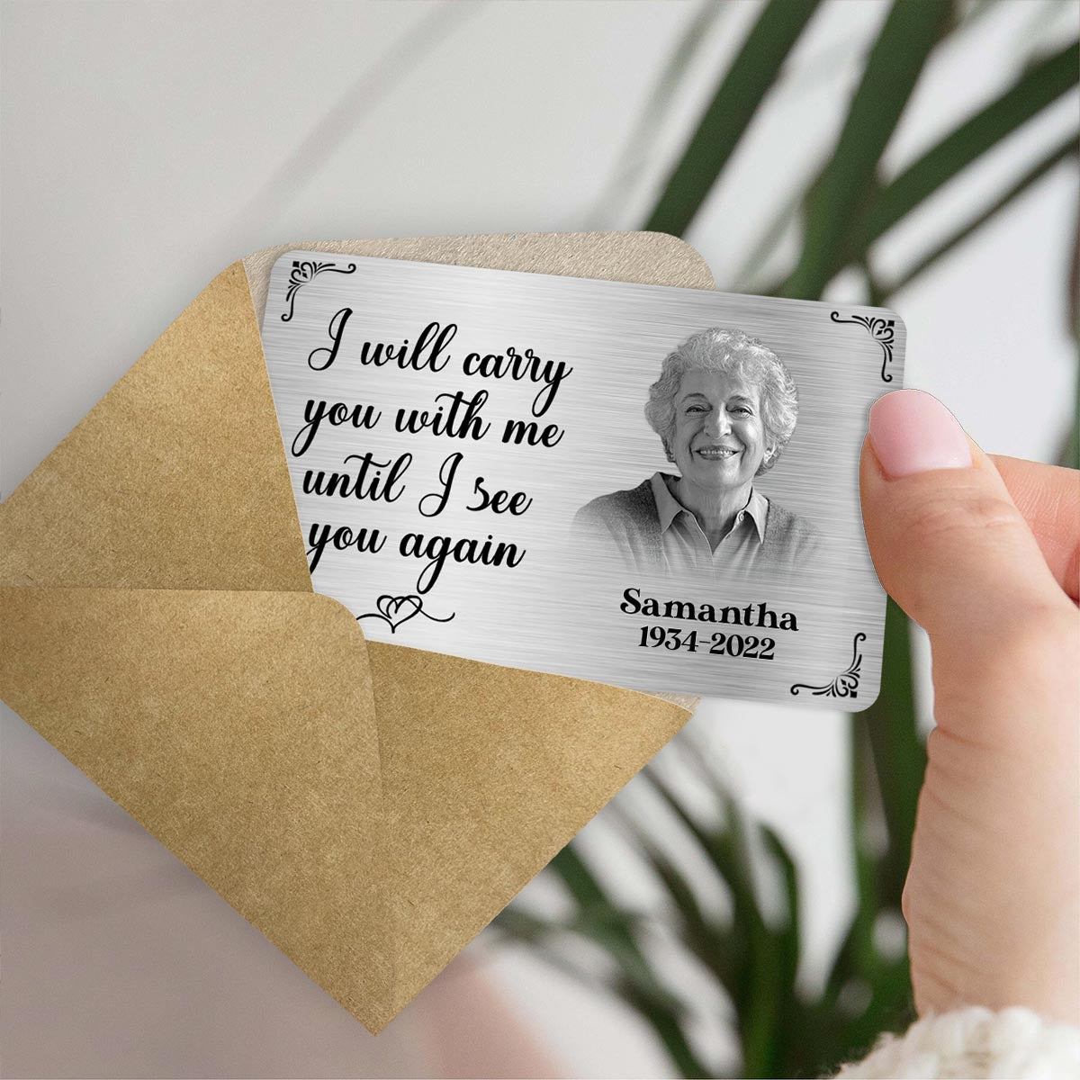 Je te porterai dans mon cœur jusqu'à ce que je te revoie - Carte commémorative personnalisée à insérer dans un portefeuille