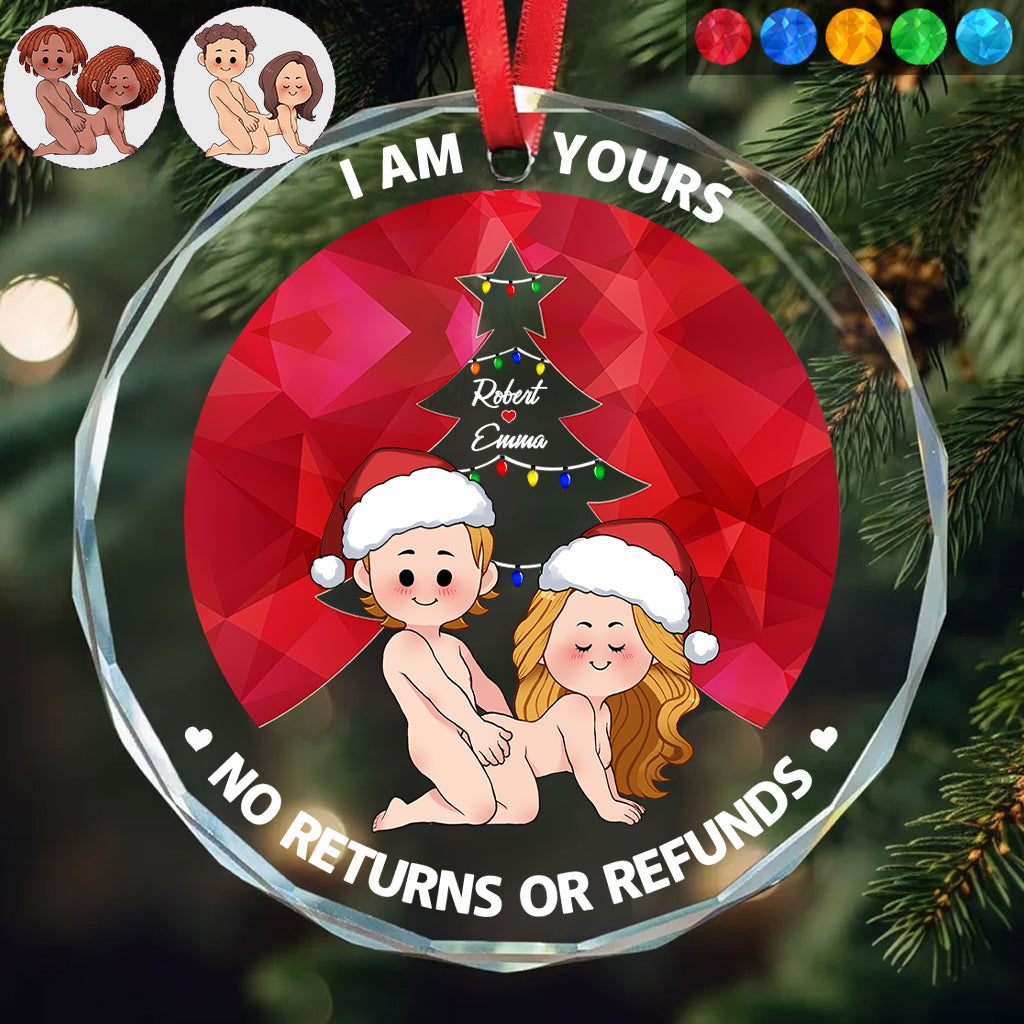 Je suis à toi. Ni retour ni remboursement - Ornement en verre rond personnalisé pour couple