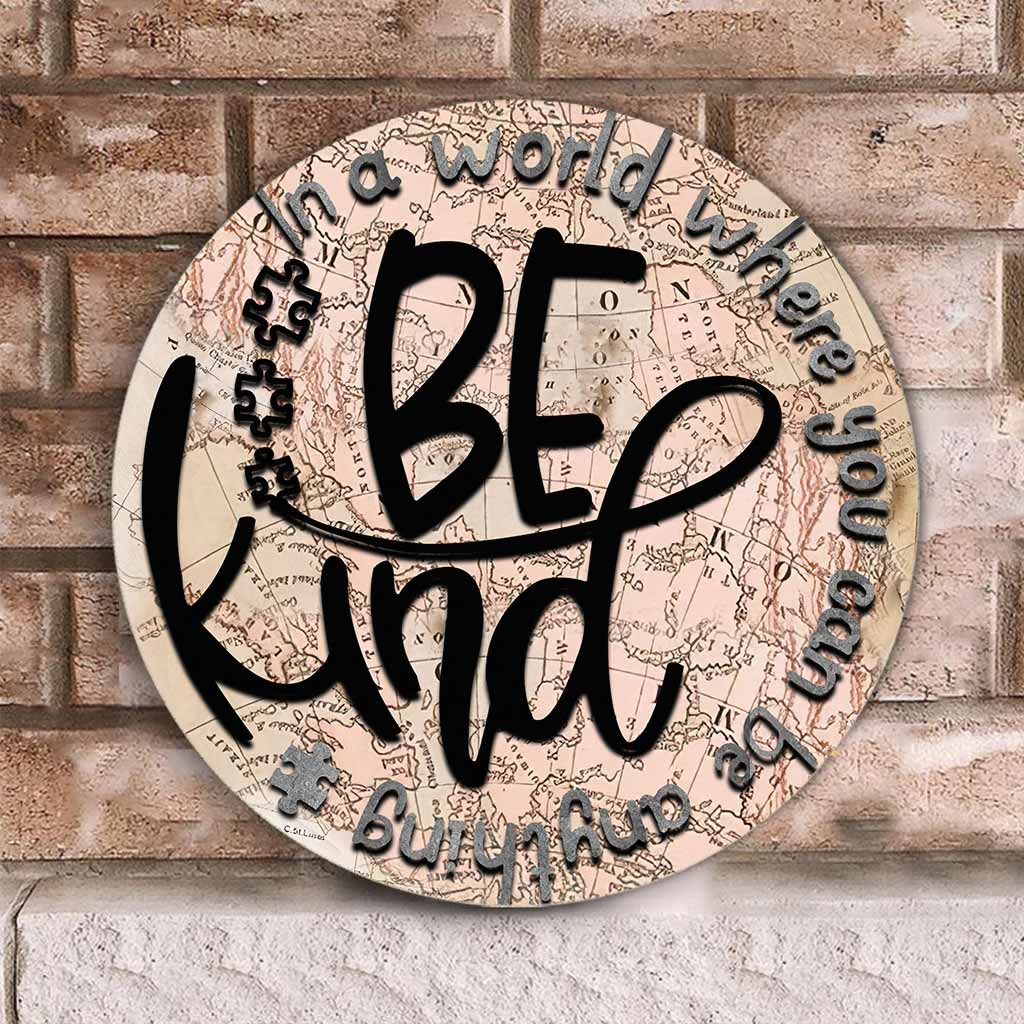 Dans un monde - Panneau rond en bois de sensibilisation à l'autisme