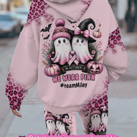 En octobre, on porte du rose - Sweat à capuche et legging personnalisés pour la sensibilisation au cancer du sein