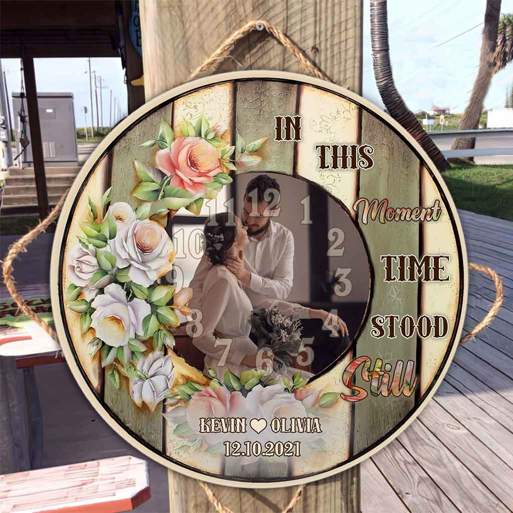 À cet instant, le temps s'est arrêté - Panneau rond en bois personnalisé pour couple