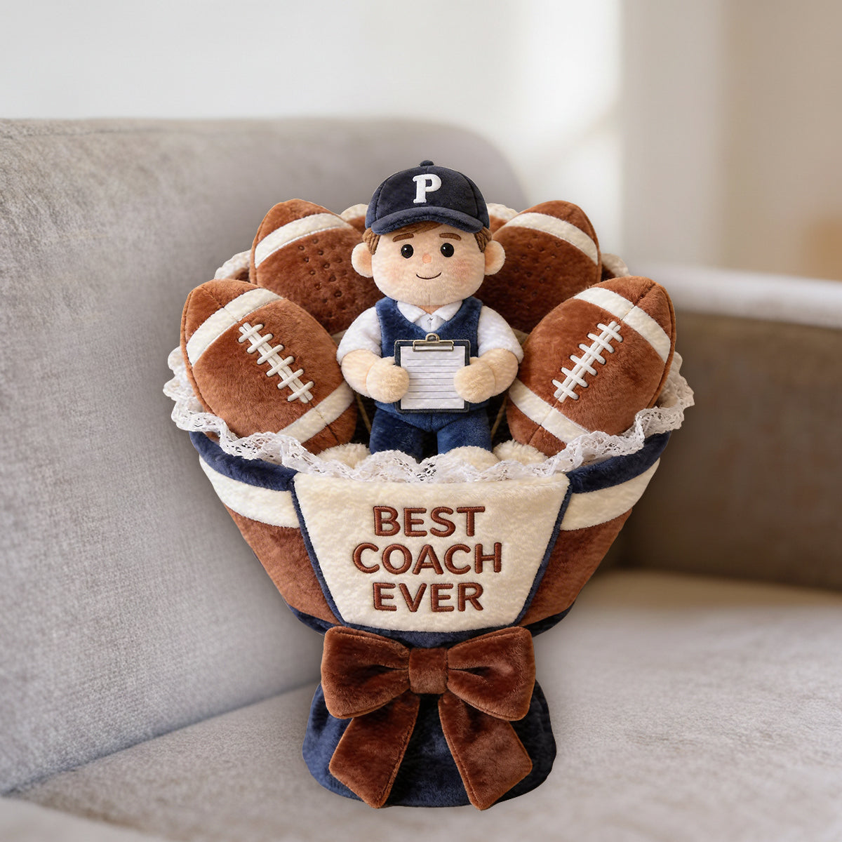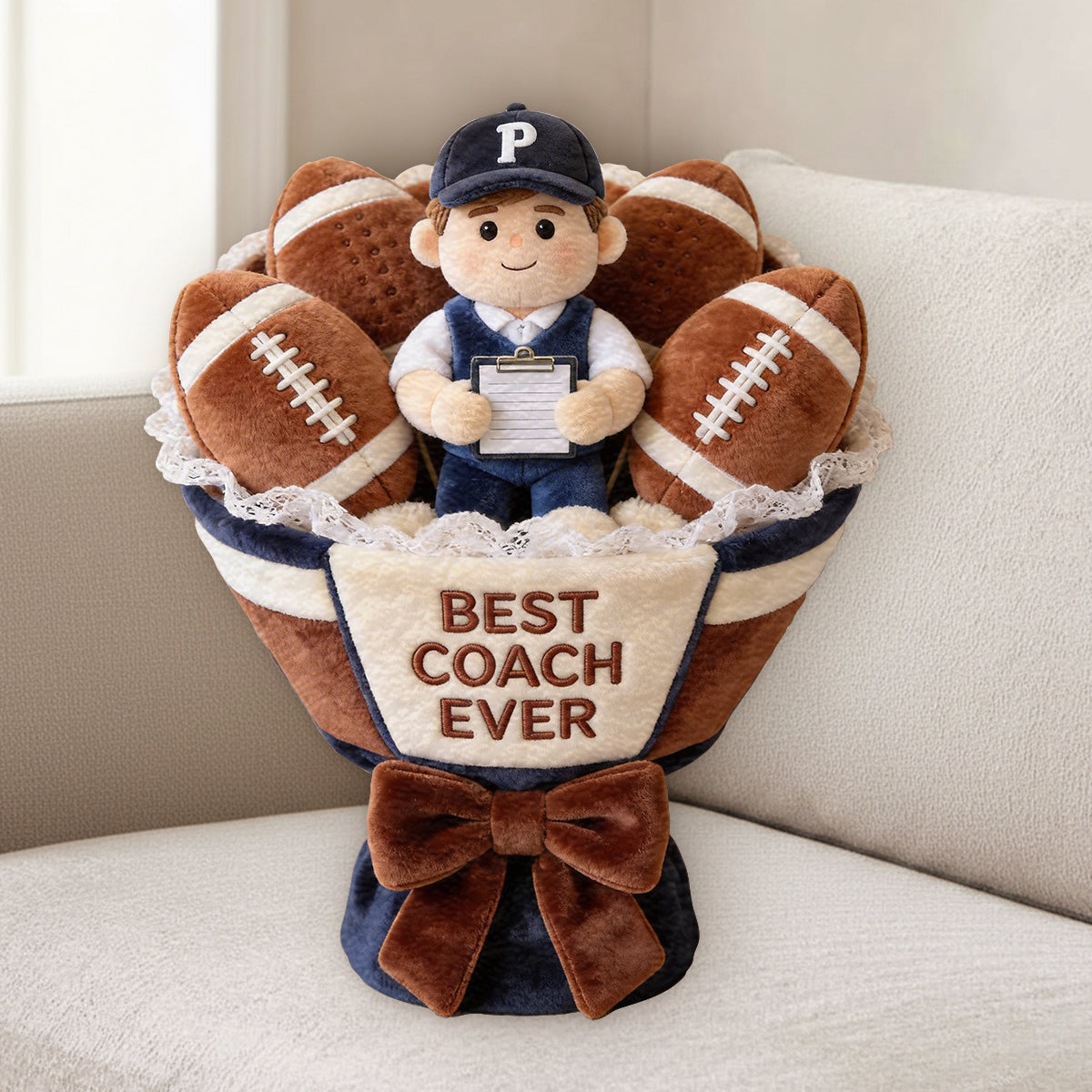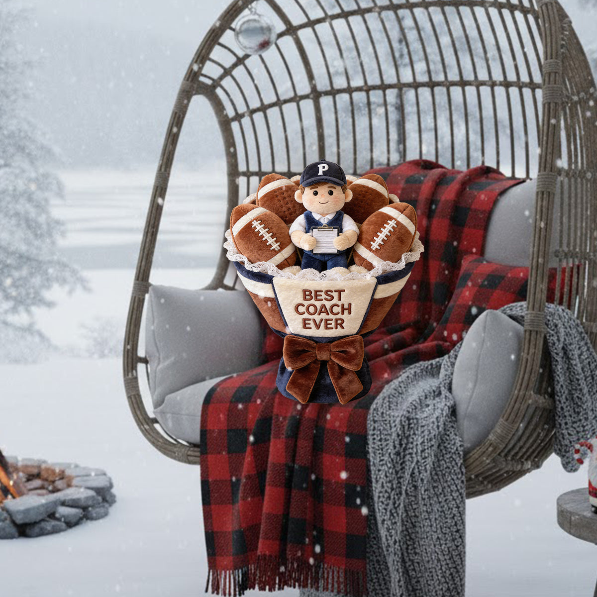 Bouquet de peluches « Amour du football américain » - Coussin en fausse fourrure premium personnalisé