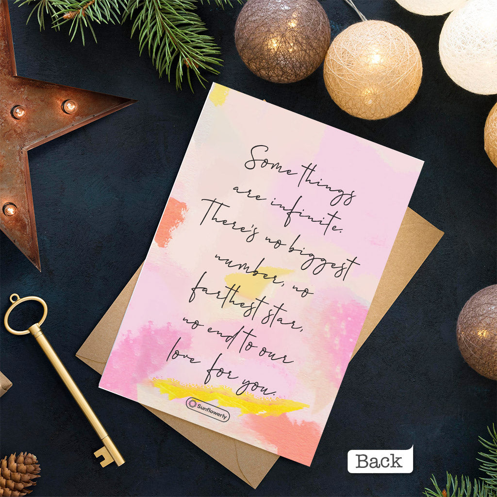 - Un petit geste, un grand impact ! Cette carte de vœux est idéale pour témoigner votre affection, où que vous soyez. Quelle que soit l'occasion : Noël, Hanoukka, anniversaire ou fiançailles, cette carte est une belle preuve d'attention.