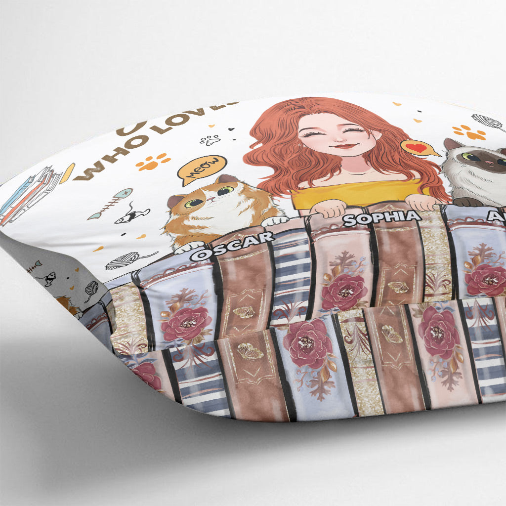 Coussin décoratif personnalisé « J’aime les livres et les chats »