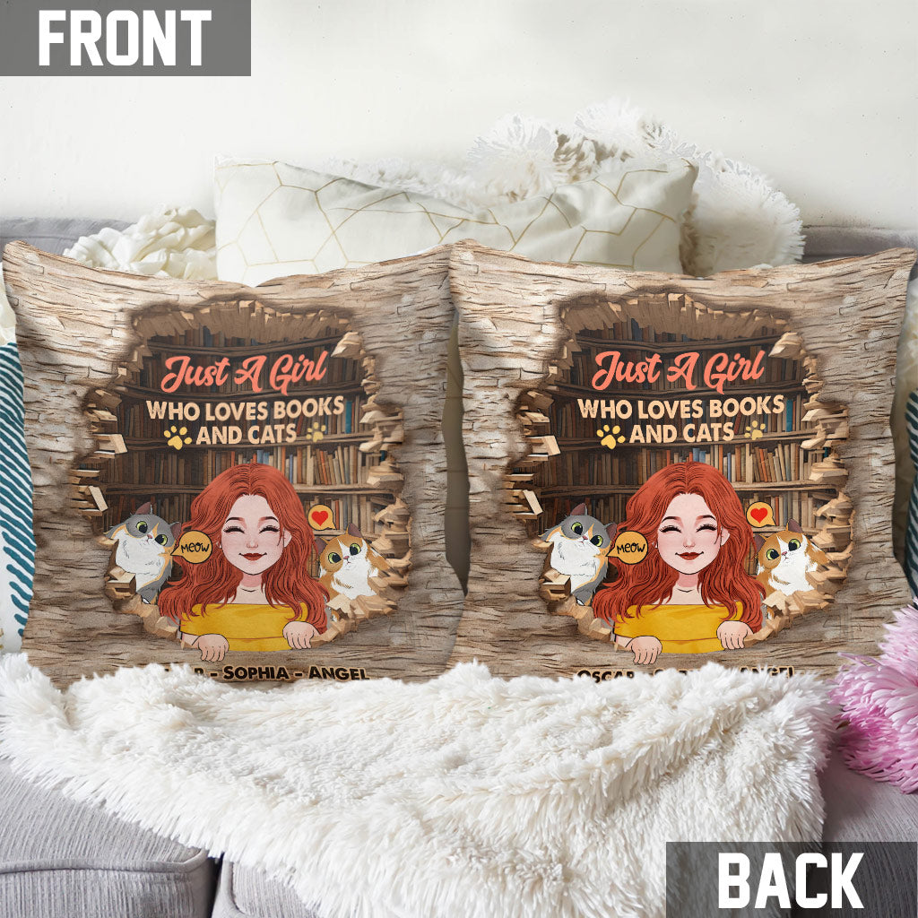 Coussin décoratif personnalisé « J’aime les livres et les chats »