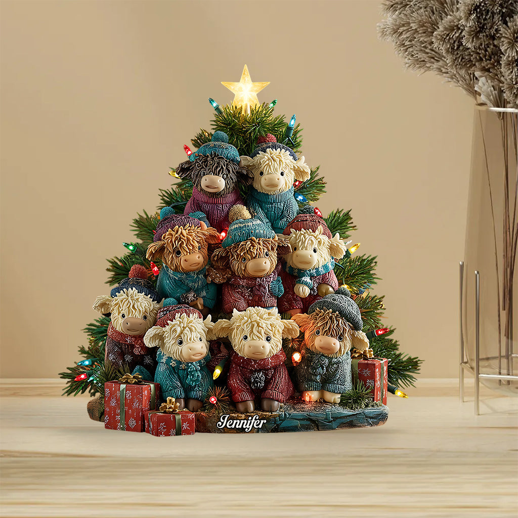 J'adore les vaches Highland - Plaque acrylique personnalisée en forme de vache Highland