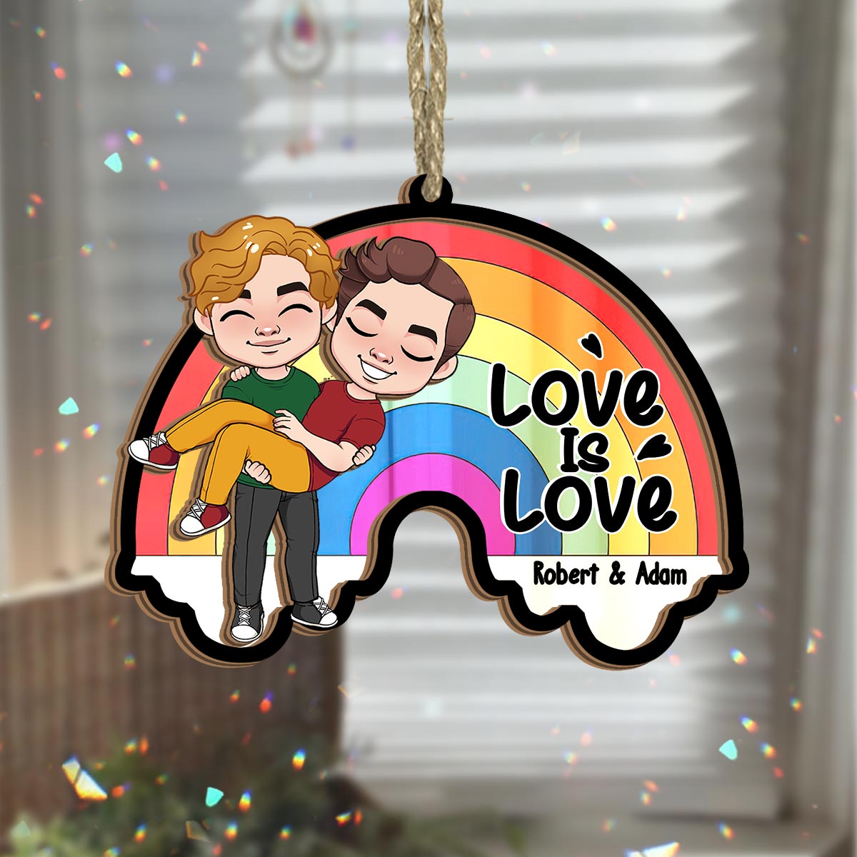 L'amour est l'amour - Attrape-soleil personnalisé pour couple, à deux niveaux, à suspendre à la fenêtre