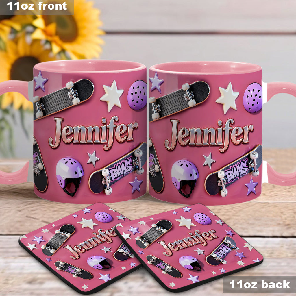 J'adore le skateboard - Mug et sous-verre personnalisés sur le thème du skateboard