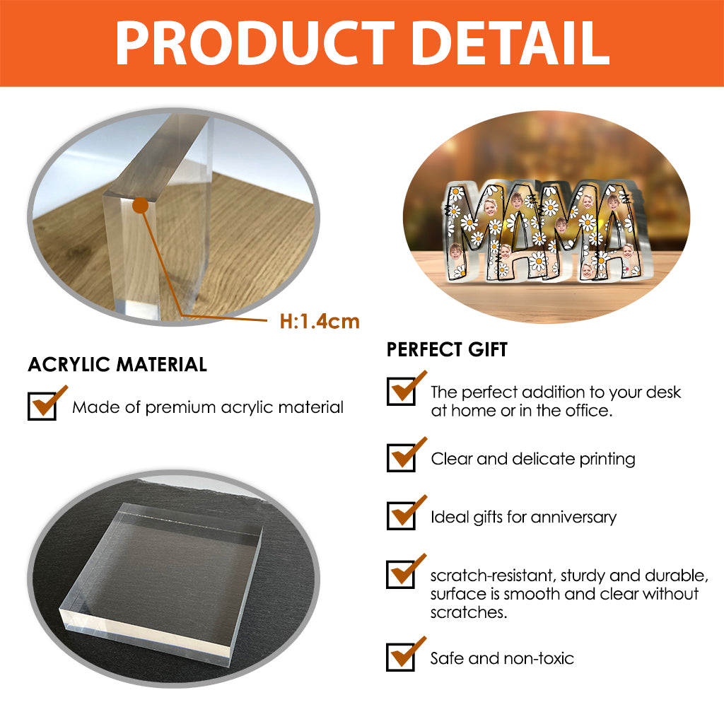 Plaque en acrylique personnalisée « Mama Est. Photo Face Daisy » - Plaque personnalisée pour maman