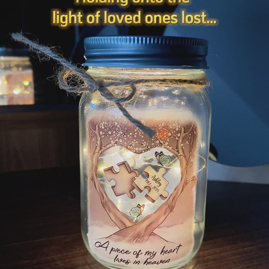 Lampe commémorative personnalisée en forme de bocal Mason, libellule et papillon - Plume céleste