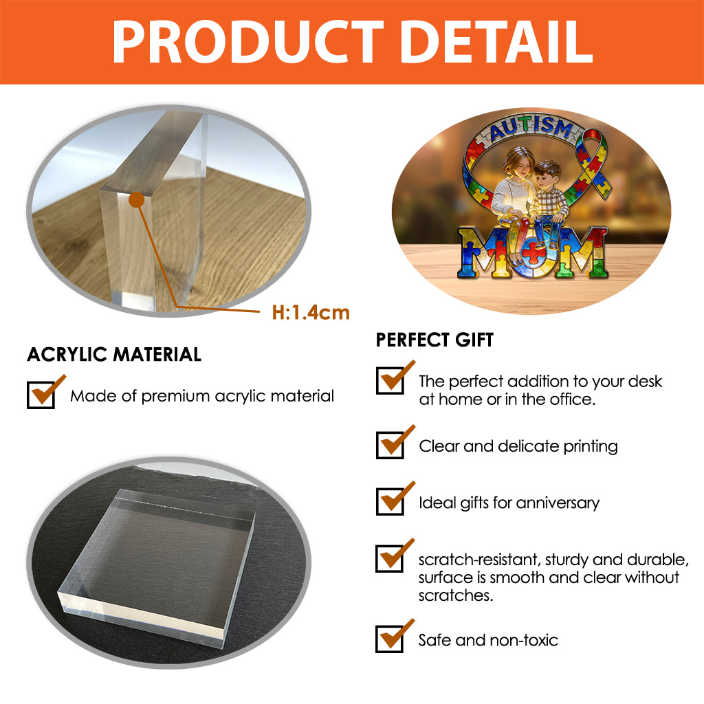 Mom, Dad And Kid - Personalized Autism Awareness Custom Shaped Acrylic Plaque