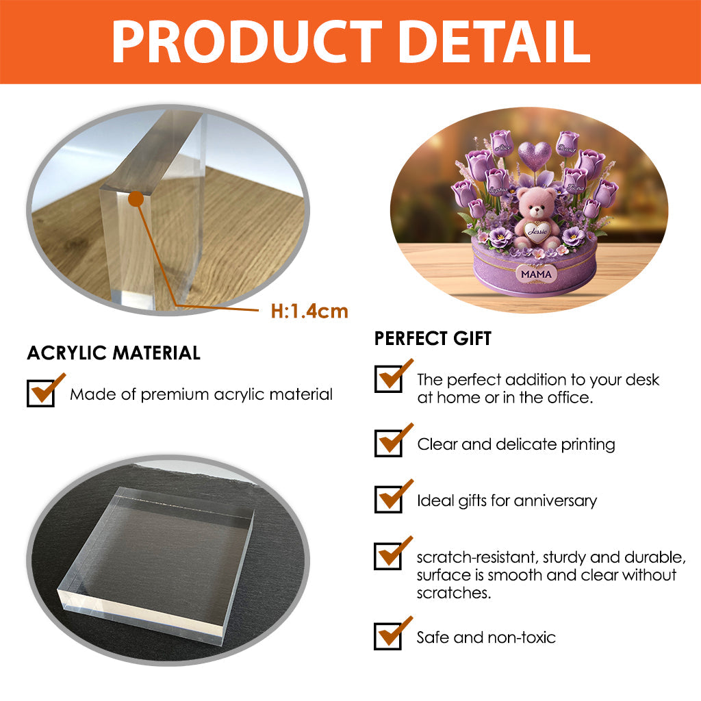 Mom Grandma Bear And Flowers - Personalized Mother Custom Shaped Acrylic Plaque