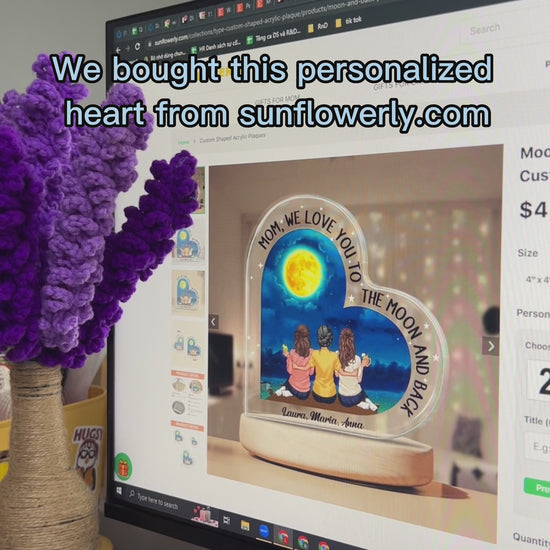 Aller-retour lunaire - Cadeau pour maman, grand-mère - Plaque acrylique personnalisée sur mesure