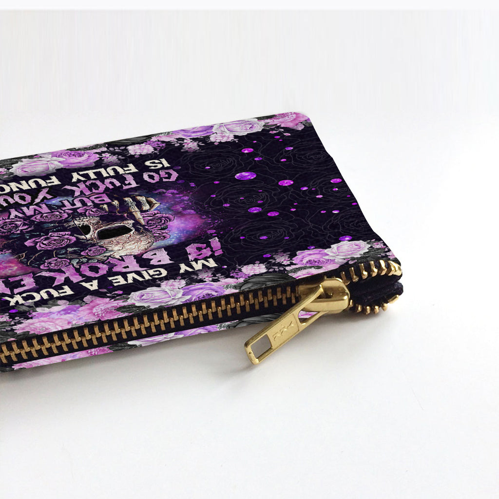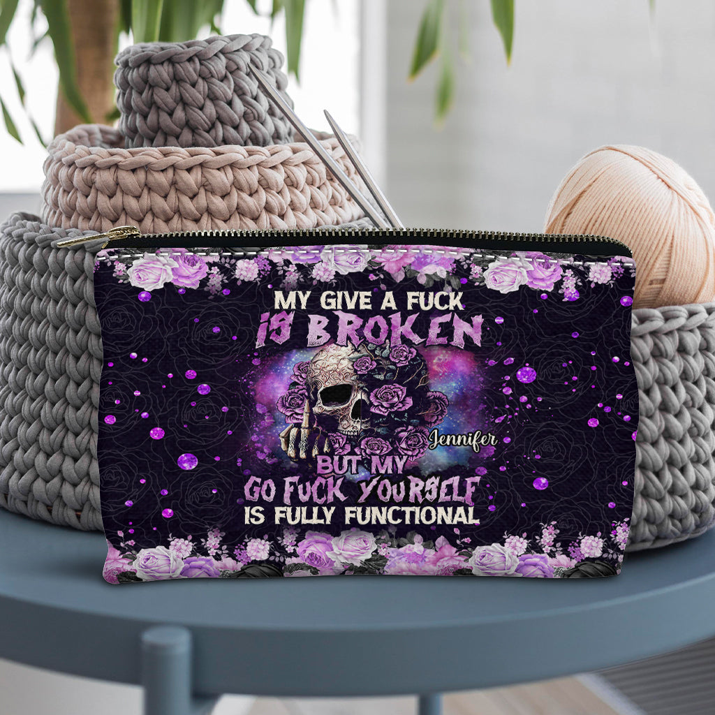 Mon « Je m'en fous » est cassé, mais mon « Va te faire foutre » est parfaitement fonctionnel ! – Pochette personnalisée en forme de crâne