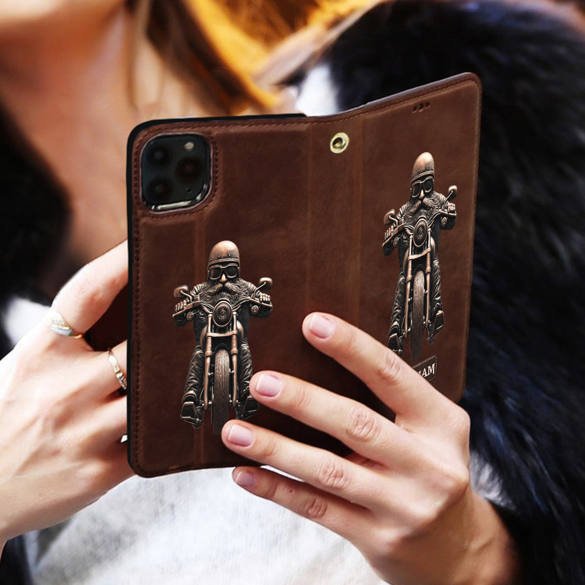 Ne sous-estimez jamais un vieux motard ! – Étui portefeuille/téléphone personnalisé pour motard avec bandoulière