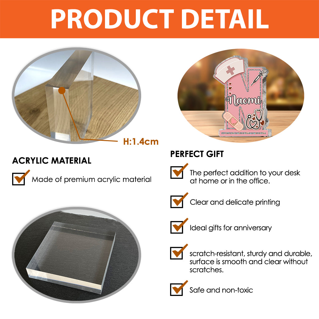 Lettre d'infirmière - Plaque acrylique personnalisée en forme de morphologie pour infirmière