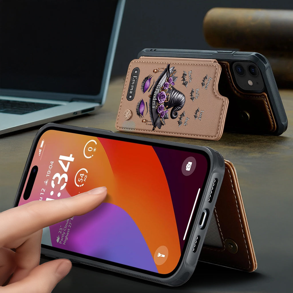 Cadeau idéal pour maman, grand-mère sorcière - Étui portefeuille personnalisé pour téléphone