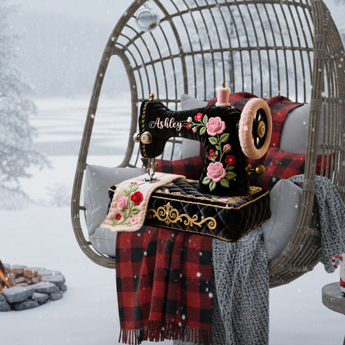 Cadeau idéal pour les passionnées de couture : coussin en fausse fourrure personnalisé en forme de couture