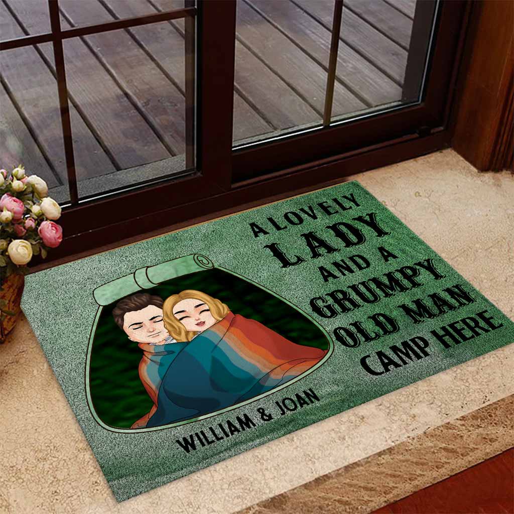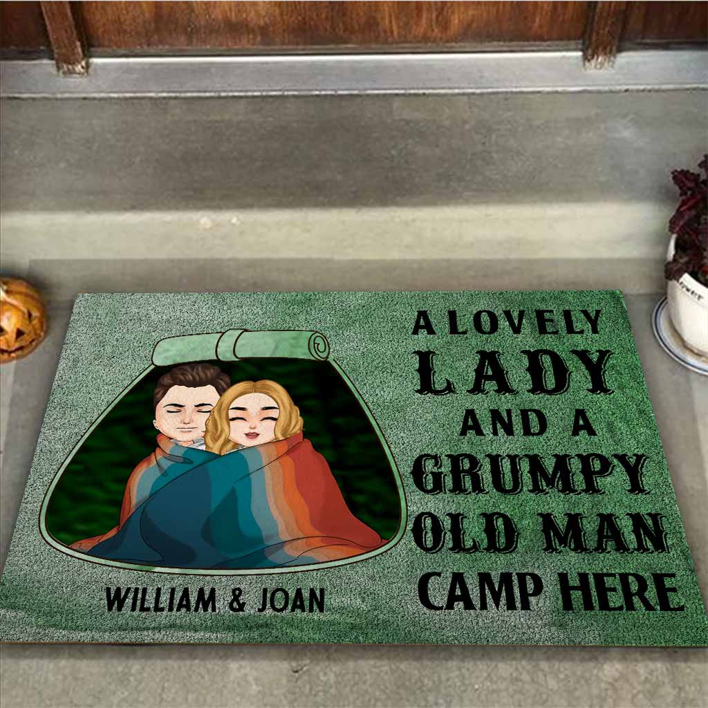 Une charmante dame et un vieux grincheux campent ici - Paillasson de camping personnalisé pour couples