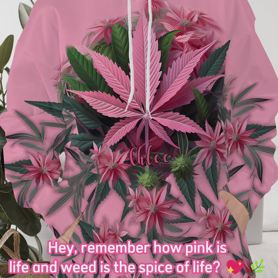 T-shirt rose « Stoner Chick » personnalisé avec motif cannabis.