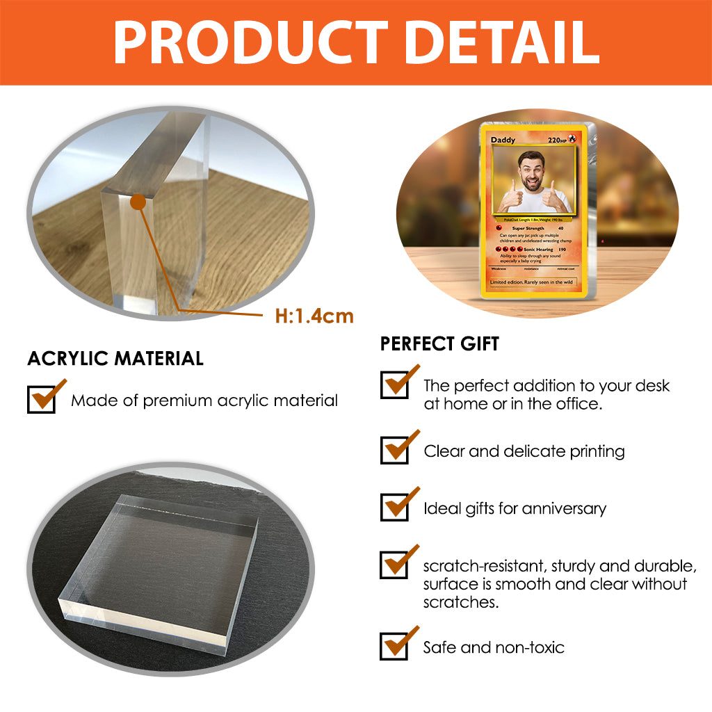 Papa Pokémon, le meilleur papa du monde - Plaque acrylique personnalisée Dresseur de Pokémons
